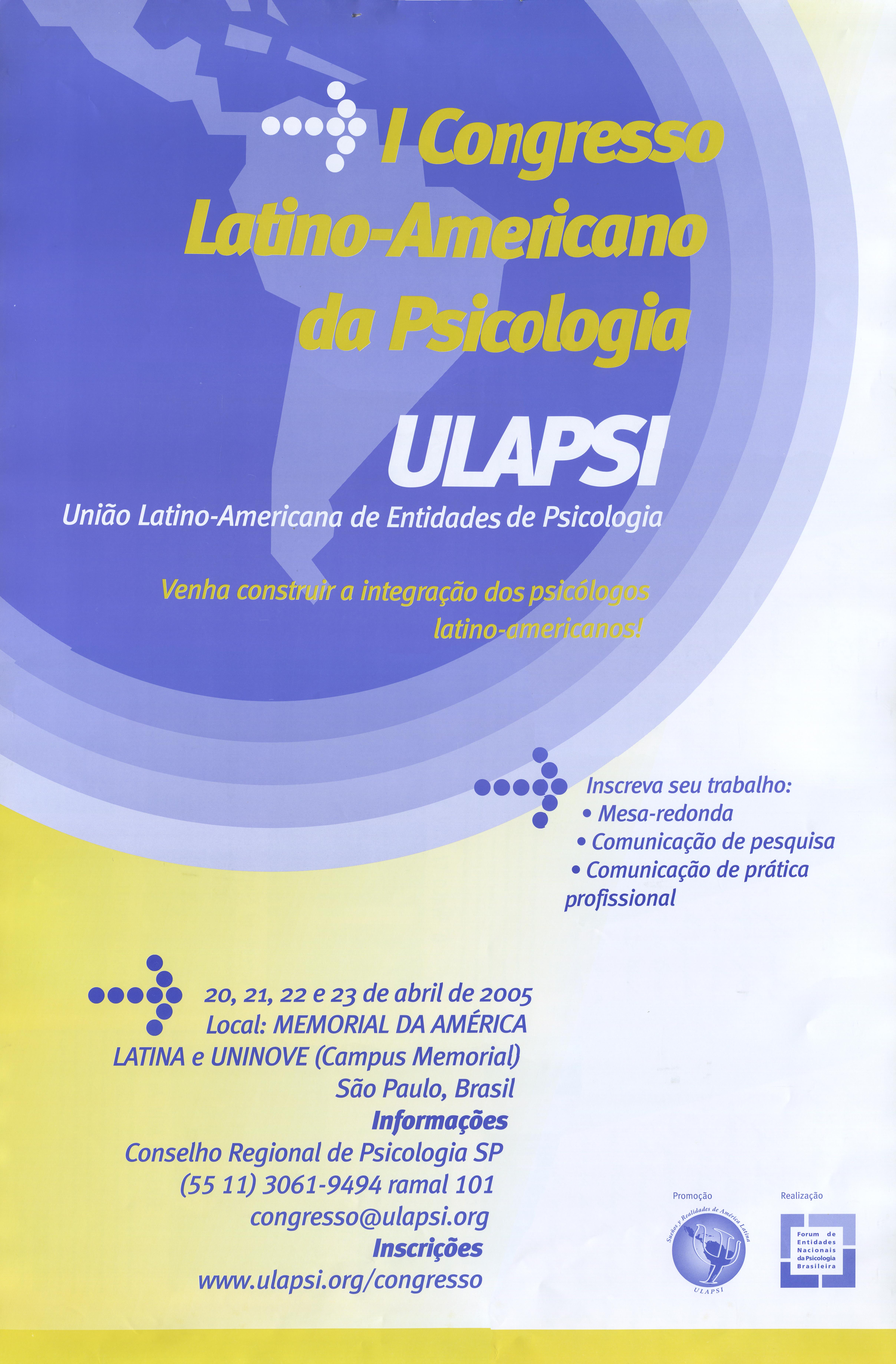 I Congresso Latino-Americano da Psicologia: ULAPSI - União Latino-Americana de Entidades de Psicologia. Venha construir a integração dos psicólogos latino-americano
