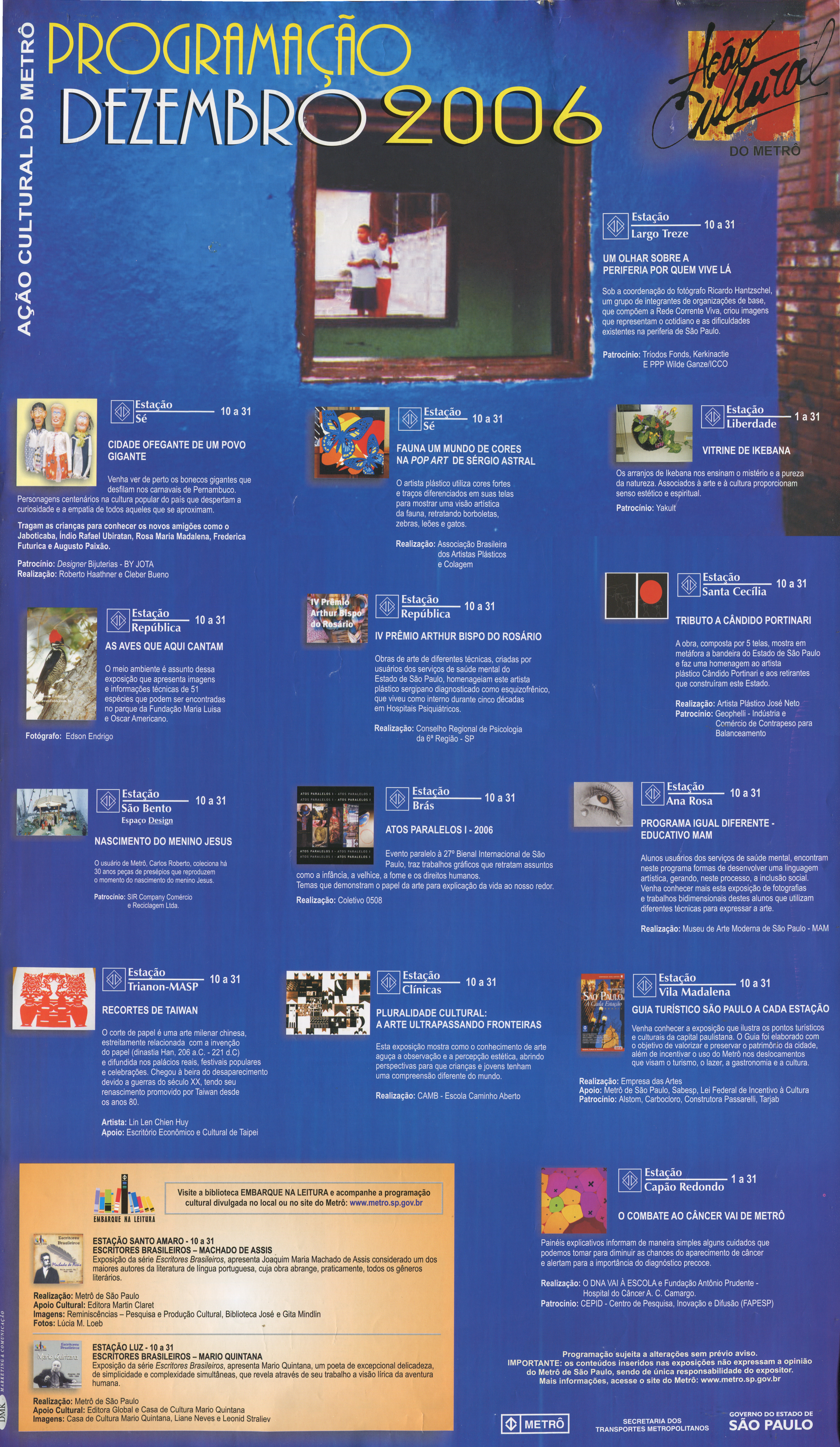 Ação cultural do metrô. Programação Dezembro/2006: IV prêmio Arthur Bispo do Rosário
