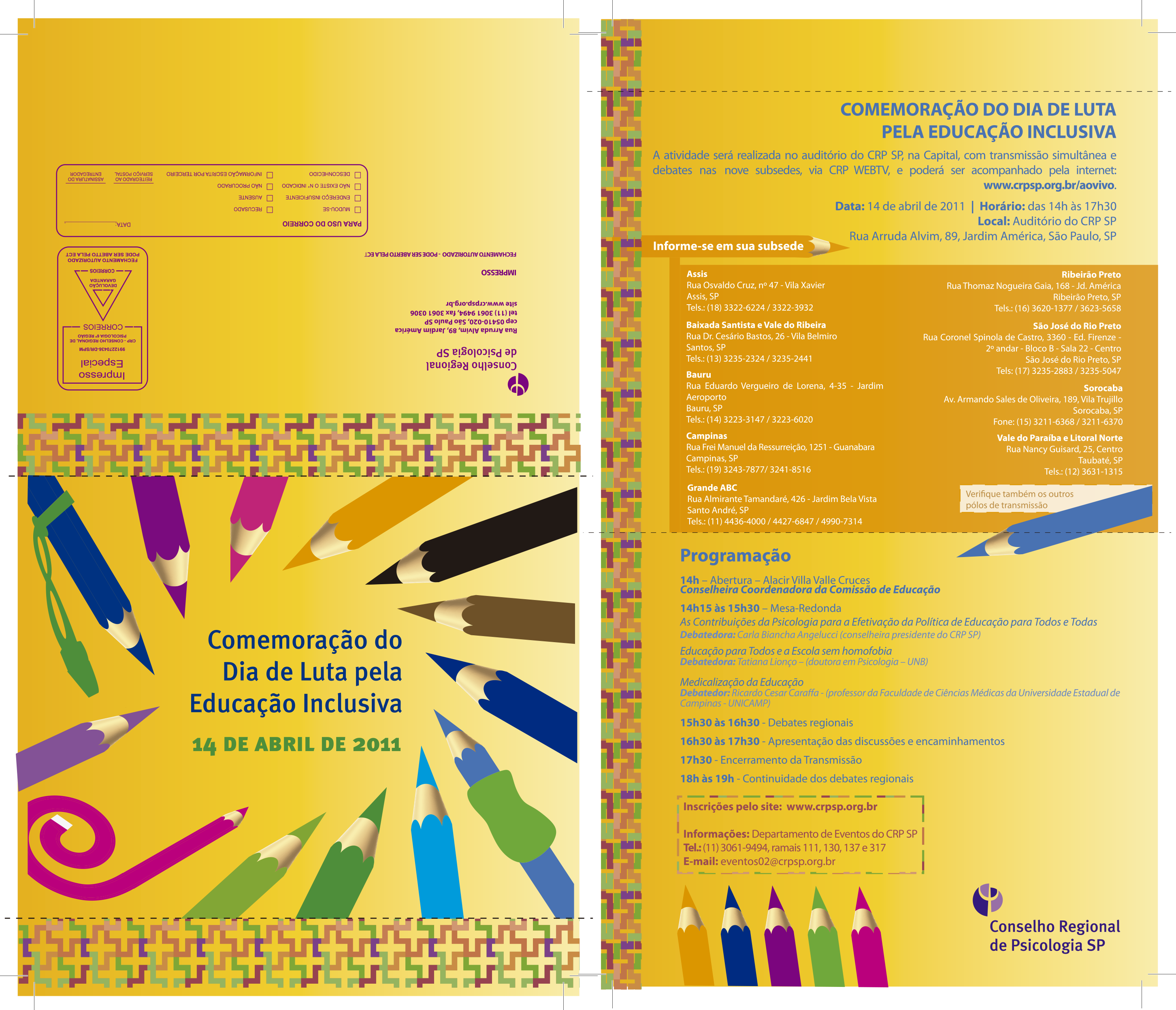 Programação : COMEMORAÇÃO DO DIA DE LUTA PELA EDUCAÇÃO INCLUSIVA.