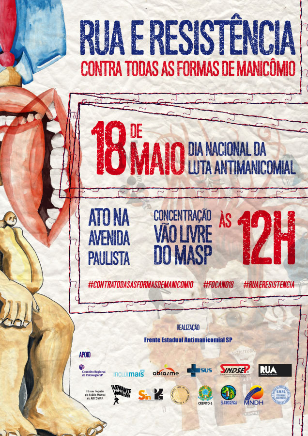 RUA E RESISTÊNCIA CONTRA TODAS AS FORMAS DE MANICÔMIO - 18 de MAIO - DIA NACIONAL DA LUTA ANTIMANICOMIAL